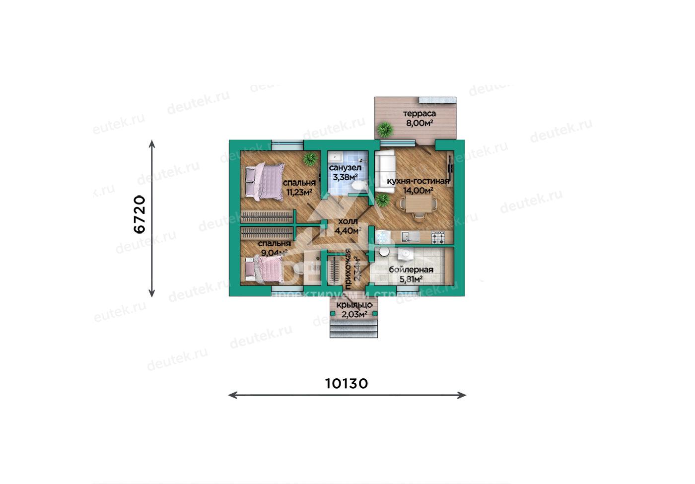 Проект узкого одноэтажного дома с площадью 50 кв м - LK-289