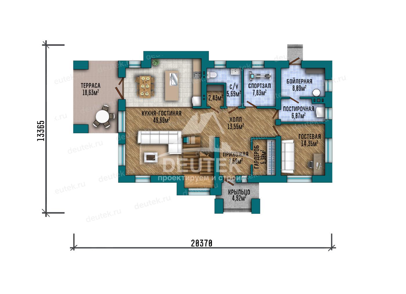 Габариты дома: 20.37 x 13.37 м