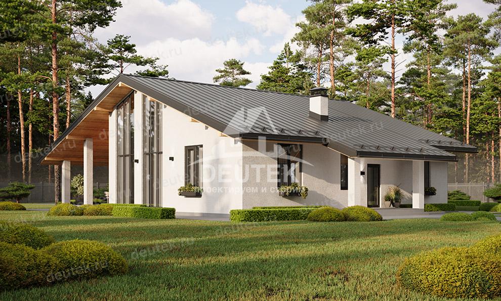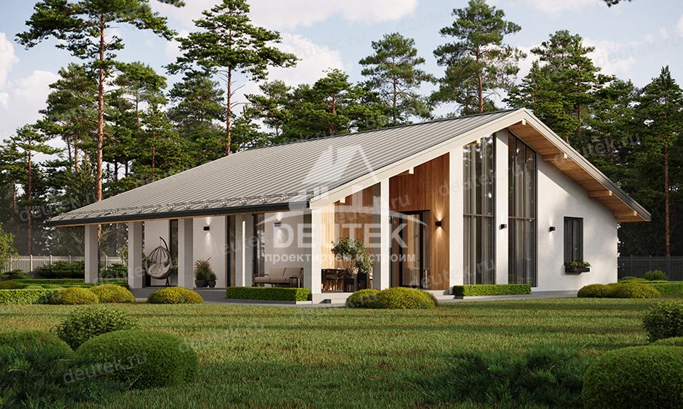 Проект загородного одноэтажного дома с большими окнами - LK-314
