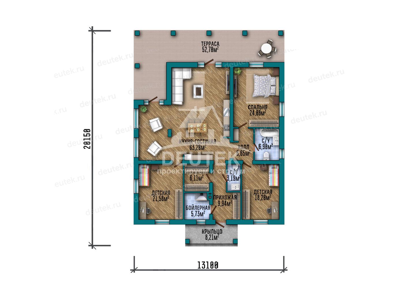 Габариты дома: 20.15 x 13.10 м