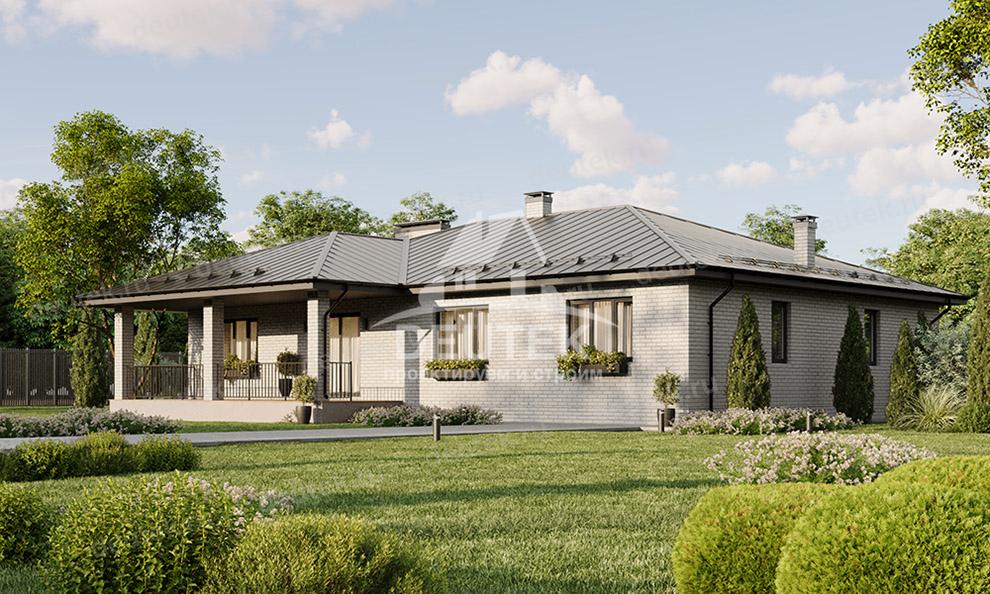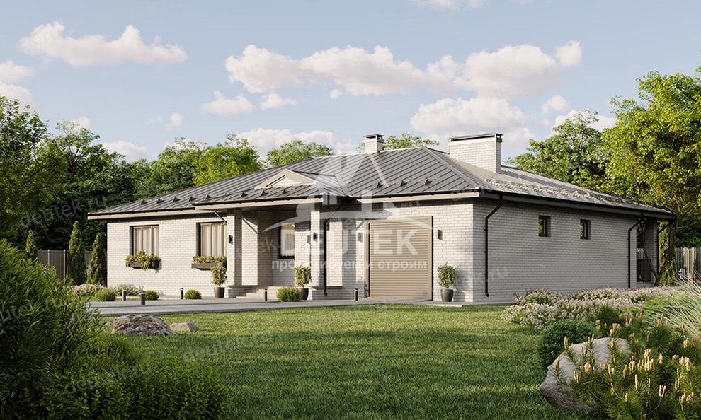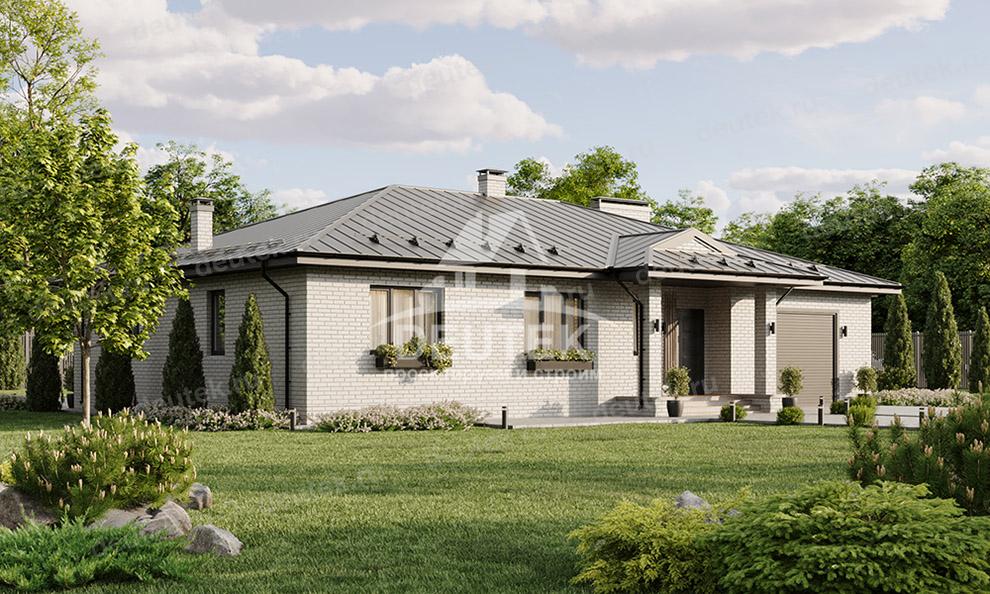 Проект квадратного одноэтажного дома с одноместным гаражом - LK-322