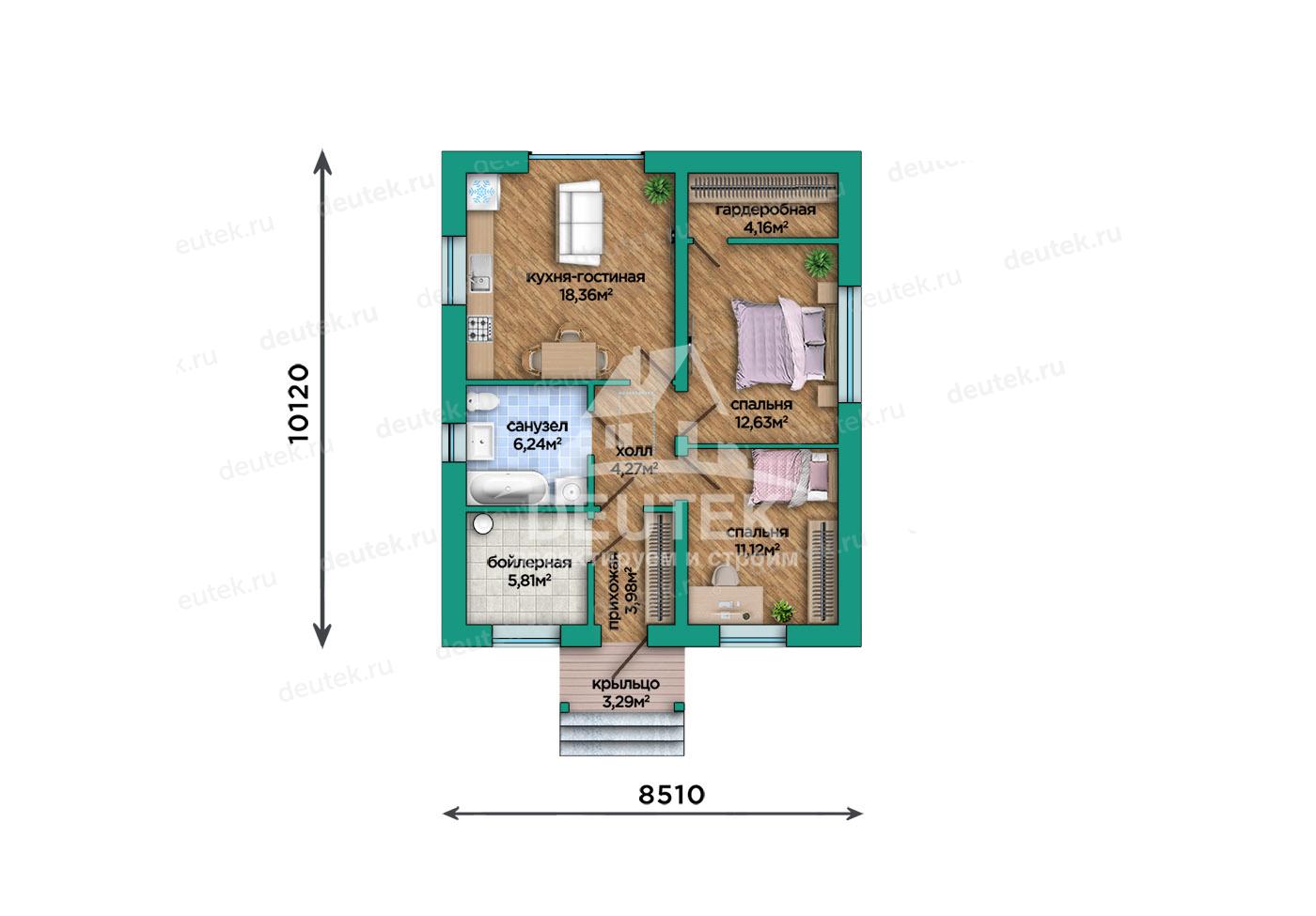 Габариты дома: 8.51 x 10.12 м