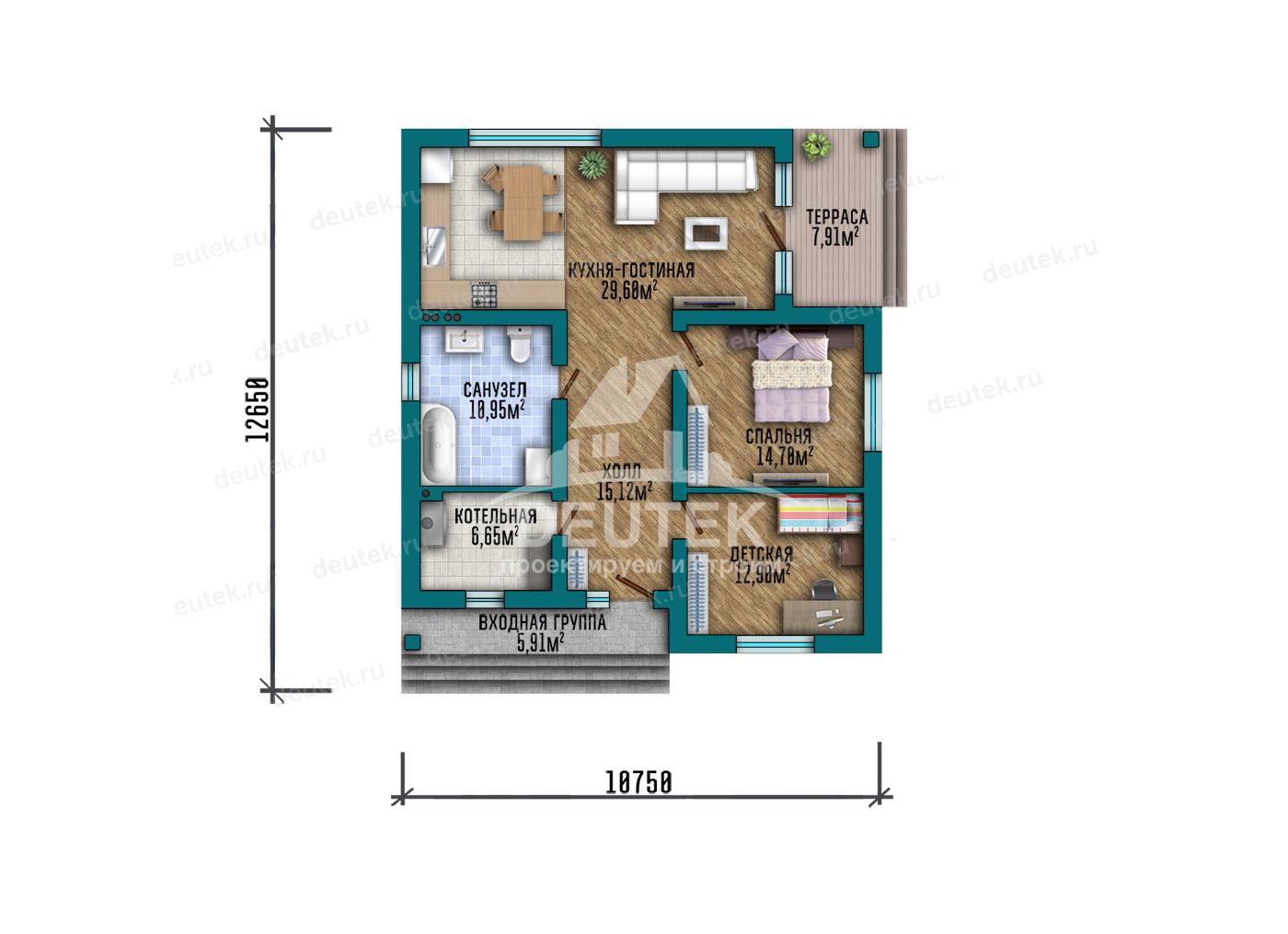 Габариты дома: 10.75 x 12.65 м
