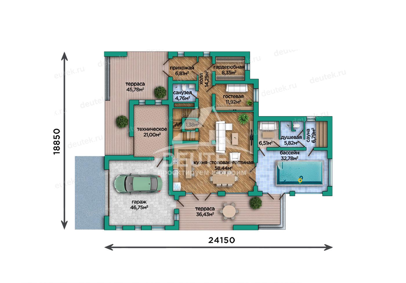 • Добавление/удаление гаража, террас, крылец, бассейнов, саун, эркеров и пр.