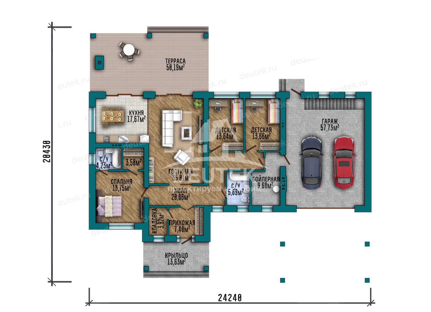 Габариты дома: 24.24 x 20.43 м