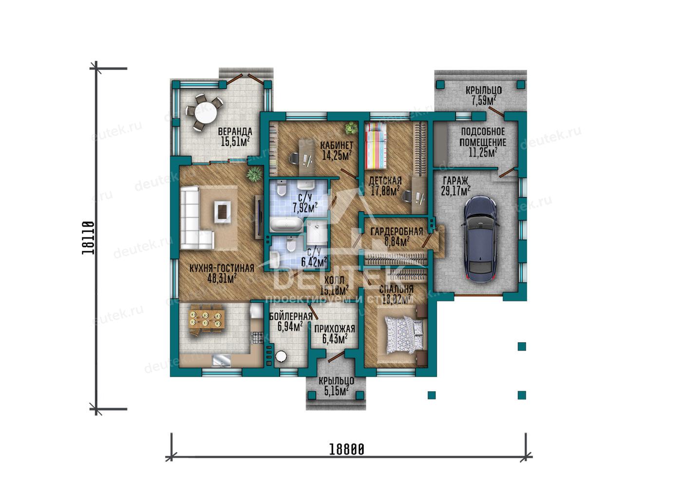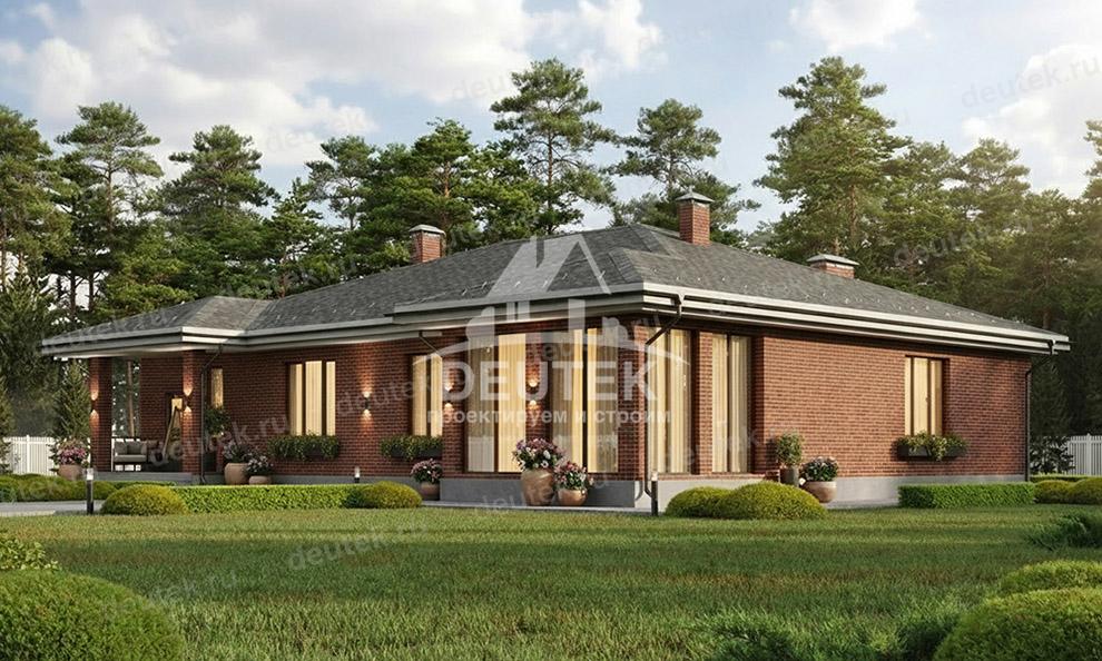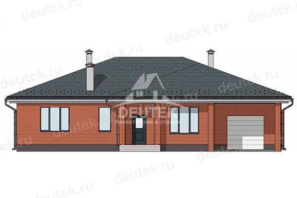 Проект квадратного одноэтажного дома с гаражом и верандой - LK-379